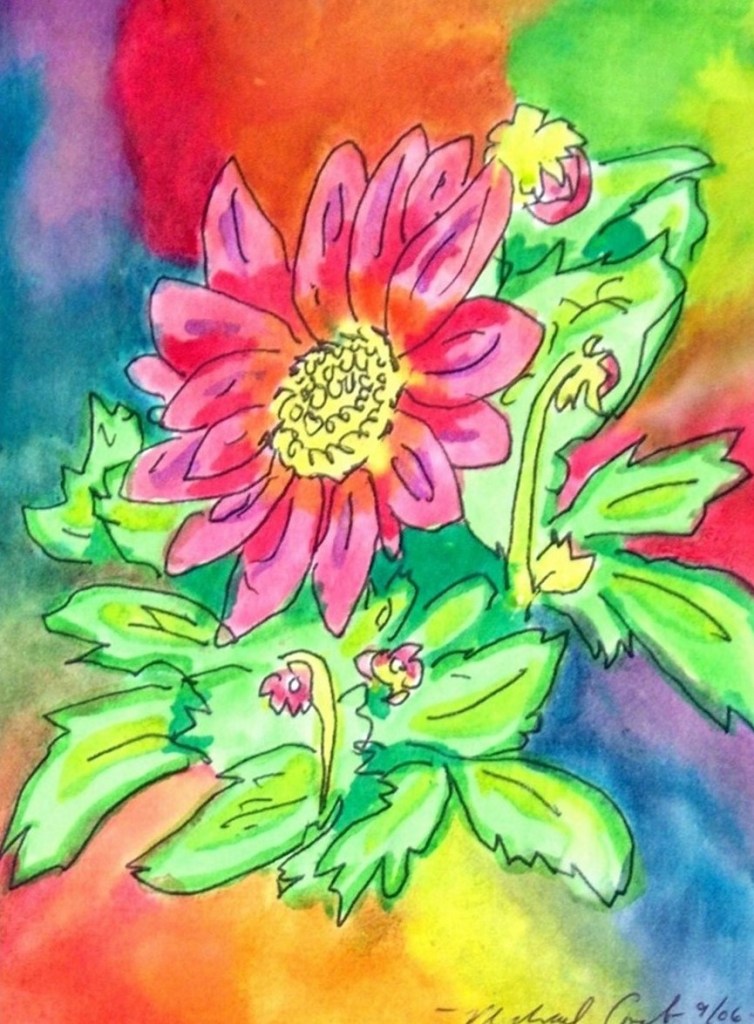 “Where are we going?” asked the first steppingstone to the one in front of him.” I don’t know,” answered the second, “I just follow whatever is in front of me,” In Story Paintings Warming Hearts, curious steppingstones, flowers, people and animals consider life’s questions. In the process of looking at happy paintings, hearing loving short stories, talking about ideas, and taking part in creative activities in this book, children and adults will explore ideas too. They will feel happy and will be inspired to express their creative gifts. Michael wove together his favorite 35 paintings and stories in a wonder-filled book for adults and children.